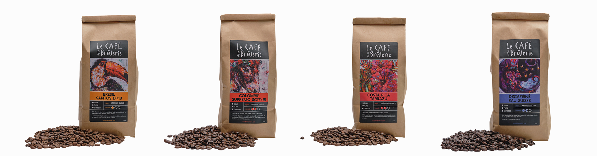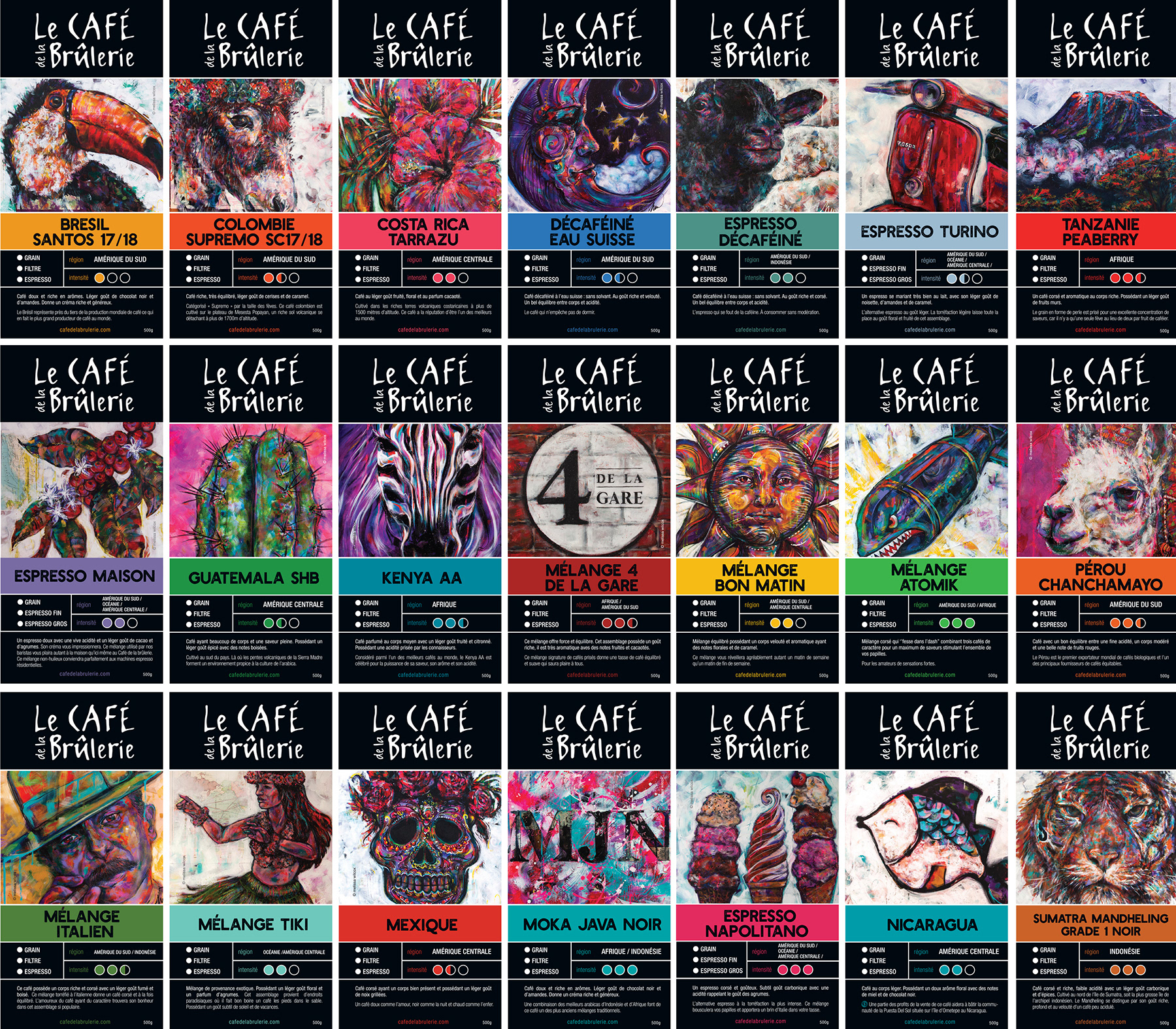 Design graphique des étiquettes café. Illustrations : Mélissa Wilcox